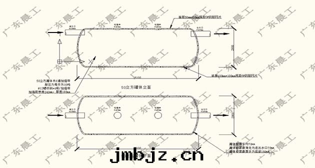 3、罐(guàn)體(tǐ)筒體(tǐ)布(bù)設多(duō)层(céng)螺紋鋼(gāng)筋网增大力學(xué)強(qiáng)度(dù)。弧面使用(yòng)2层(céng)8号(hào)和(hé)10号(hào)螺紋鋼(gāng)筋网,网孔为(wèi)150*150mm。